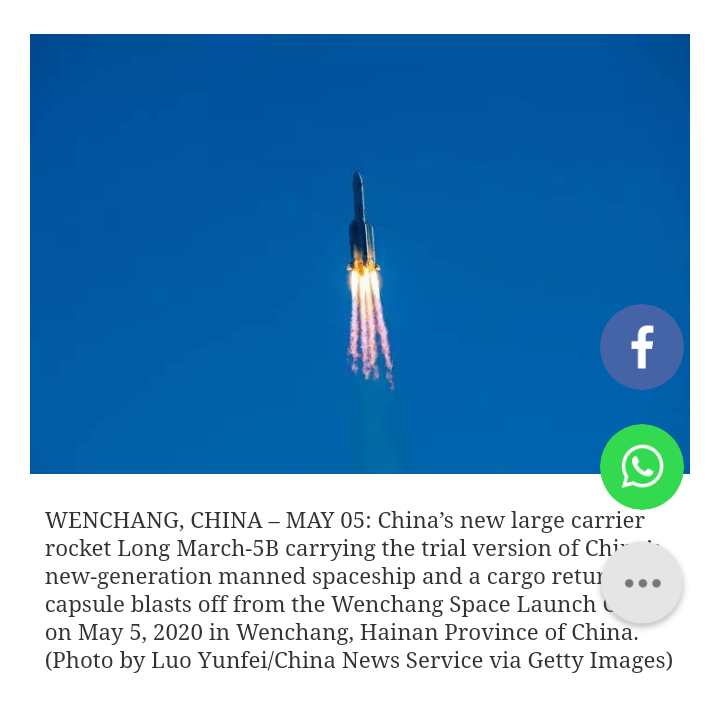 On May 5, a Long March 5B rocket launched a prototype crew capsule resembling a SpaceX Crew Dragon to orbit for a test. Now, after almost a week orbiting the Earth, the core stage of the large rocket is on a collision course with the upper atmosphere and whatever doesn’t burn up during its descent will impact the planet.
